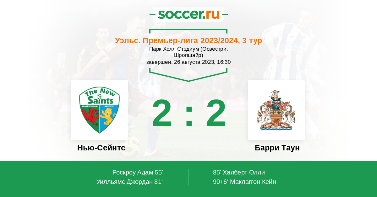 Протокол матча Нью-Сейнтс против Барри Таун