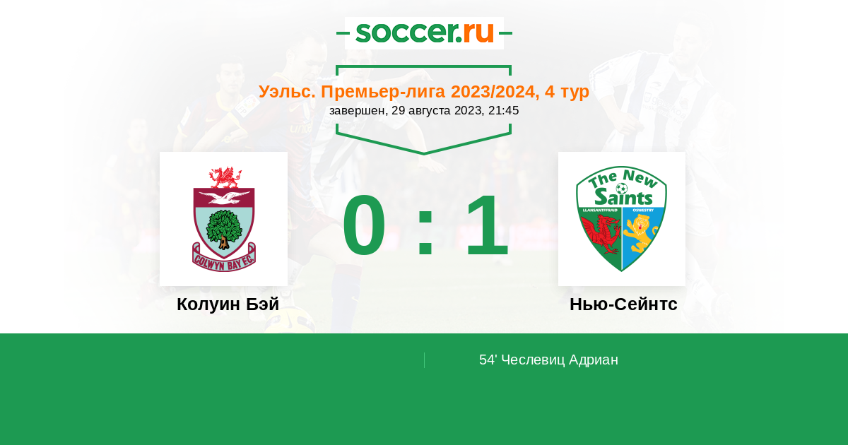 Протокол матча Колуин Бэй против Нью-Сейнтс