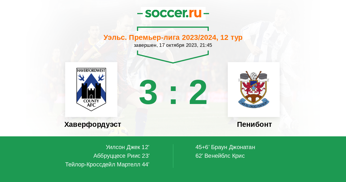Протокол матча Хаверфордуэст против Пенибонт