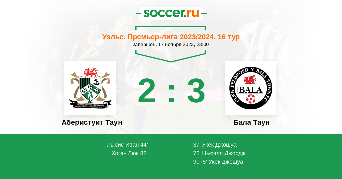 Протокол матча Аберистуит Таун против Бала Таун