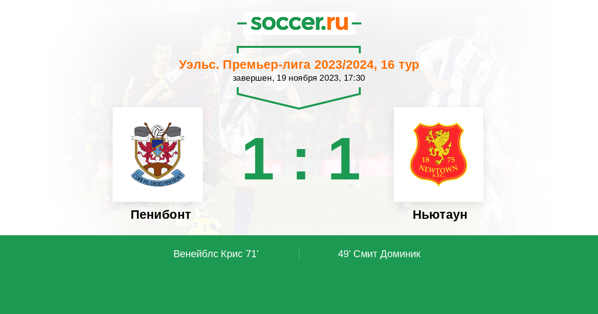 Протокол матча Пенибонт против Ньютаун