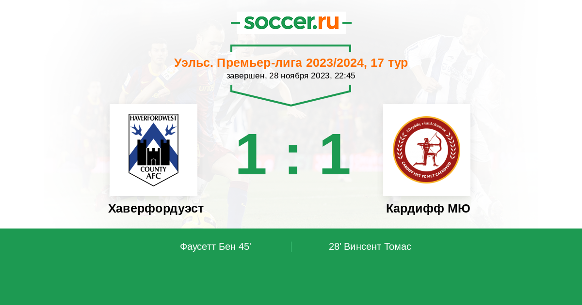 Протокол матча Хаверфордуэст против Кардифф МЮ