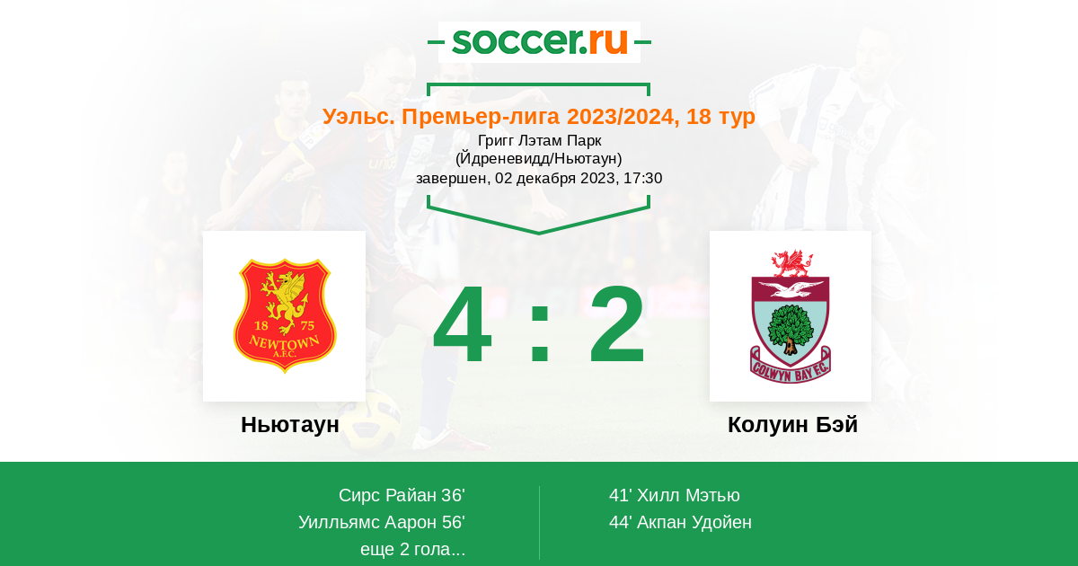 Протокол матча Ньютаун против Колуин Бэй