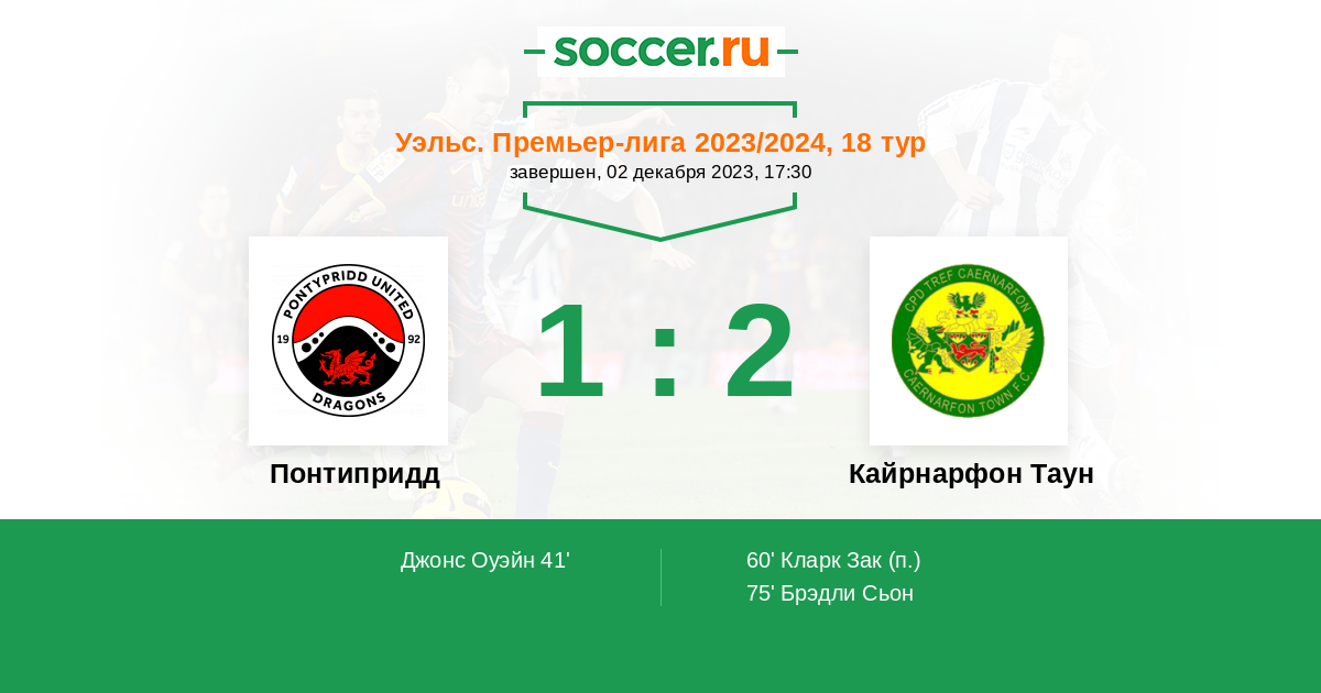 Протокол матча Понтипридд против Кайрнарфон Таун