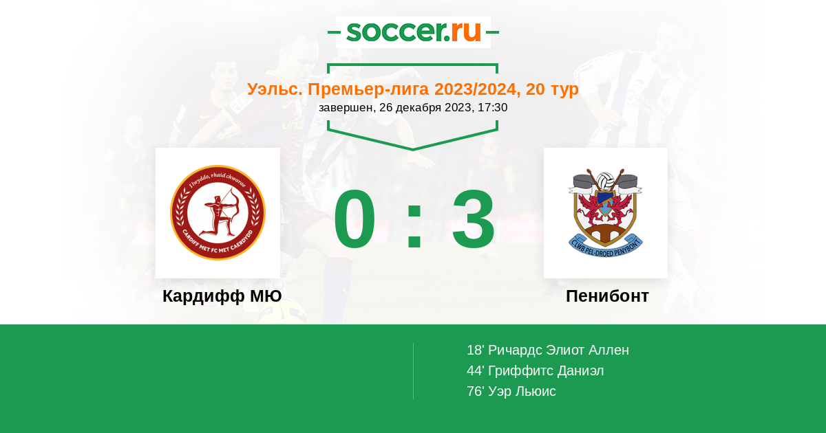 Протокол матча Кардифф МЮ против Пенибонт