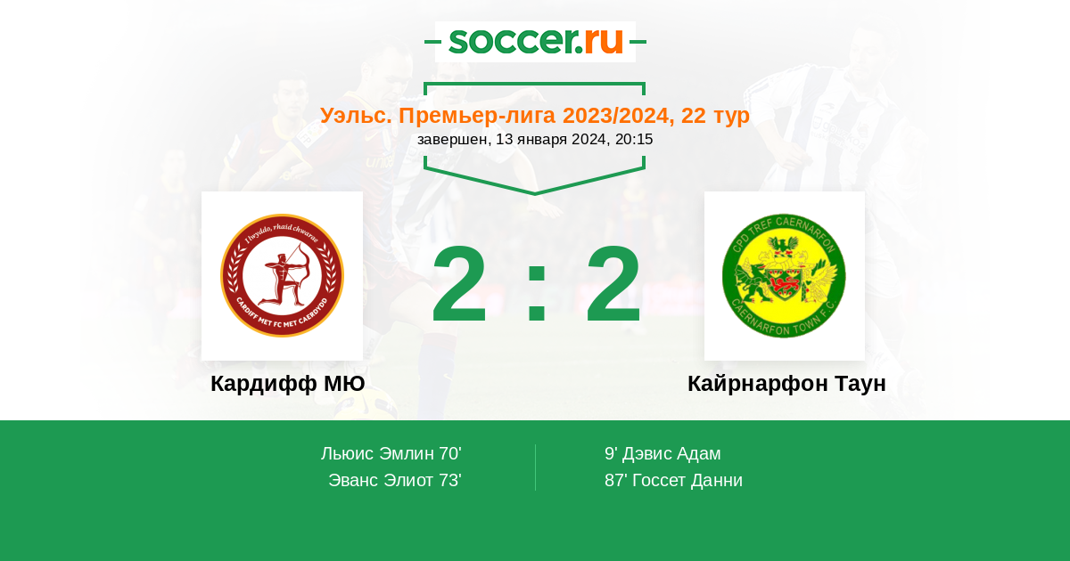 Протокол матча Кардифф МЮ против Кайрнарфон Таун