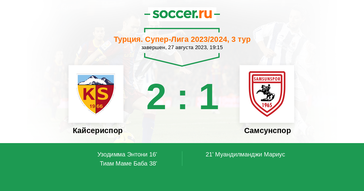 Протокол матча Кайсериспор против Самсунспор
