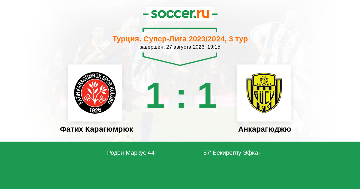 Протокол матча Фатих Карагюмрюк против Анкарагюджю