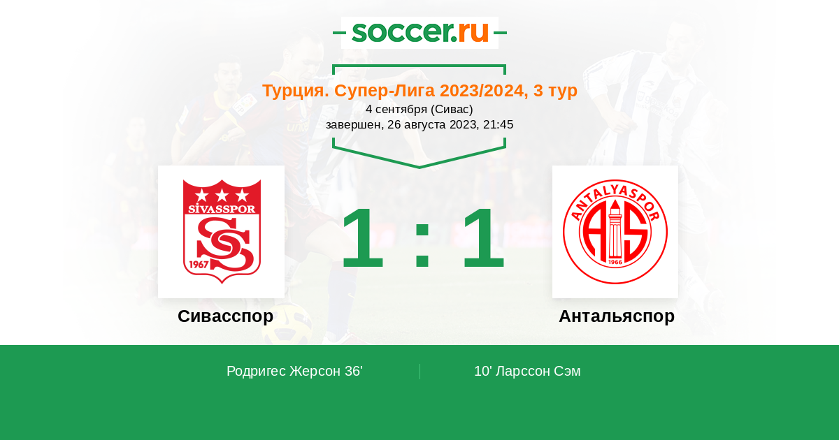 Протокол матча Сивасспор против Антальяспор