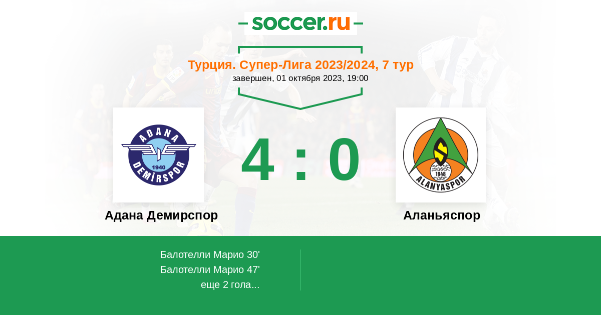 30' (1:0) Балотелли Марио (99) (Сари Юсуф (7))