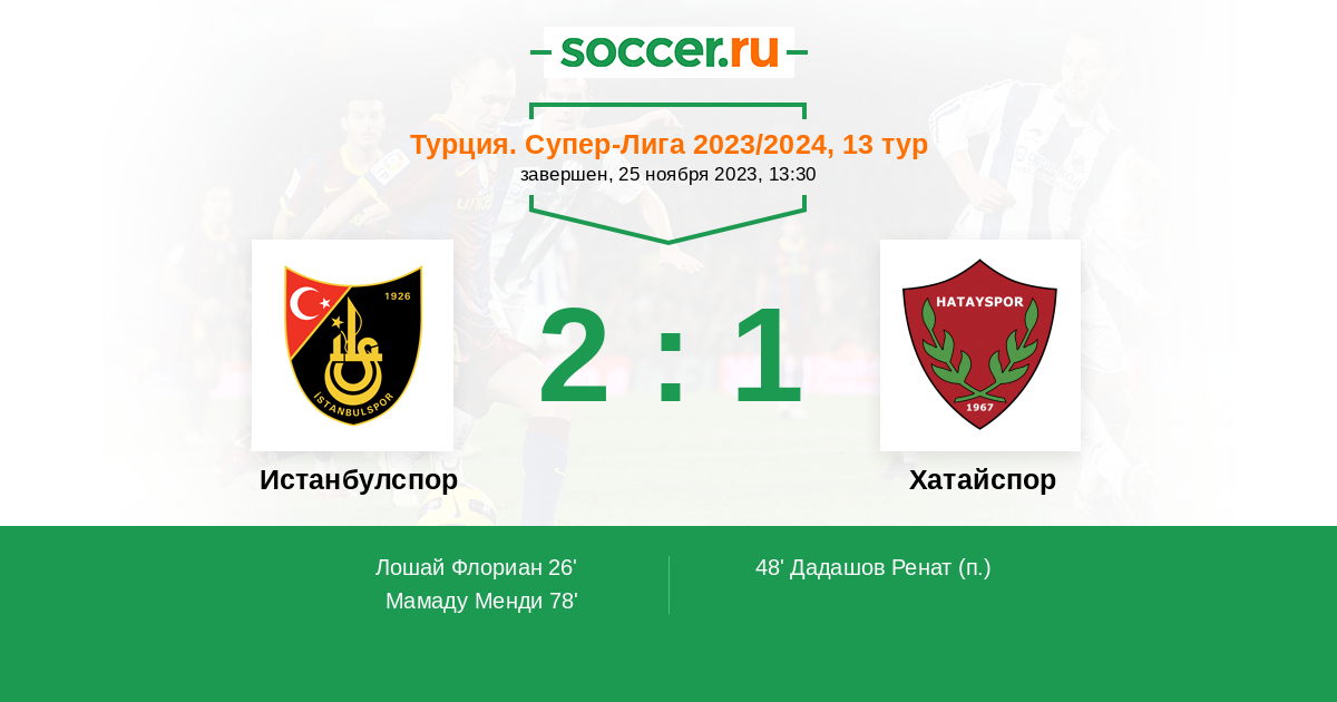 Протокол матча Истанбулспор против Хатайспор