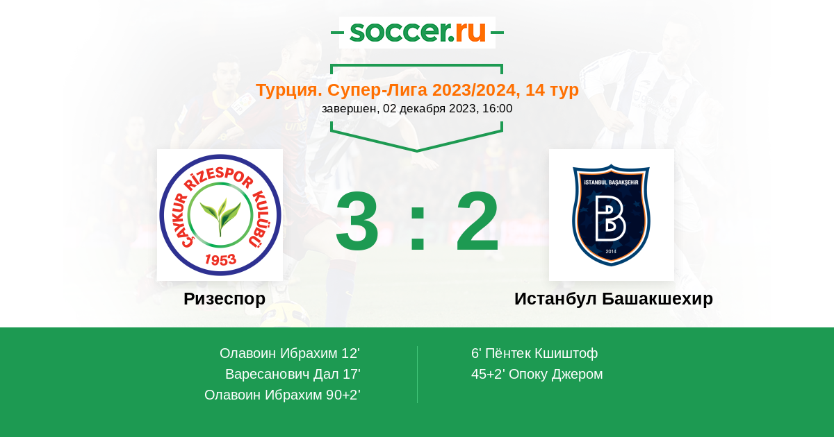 Протокол матча Ризеспор против Истанбул Башакшехир