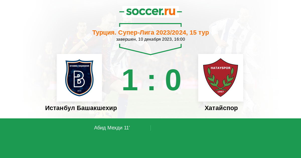 Протокол матча Истанбул Башакшехир против Хатайспор