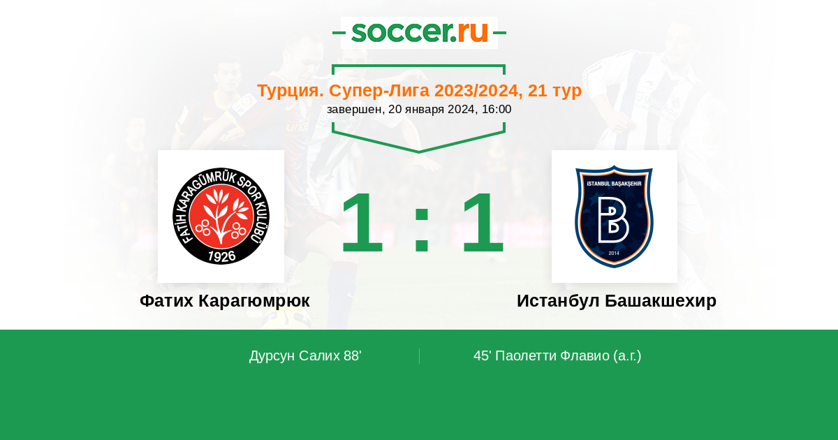 Протокол матча Фатих Карагюмрюк против Истанбул Башакшехир