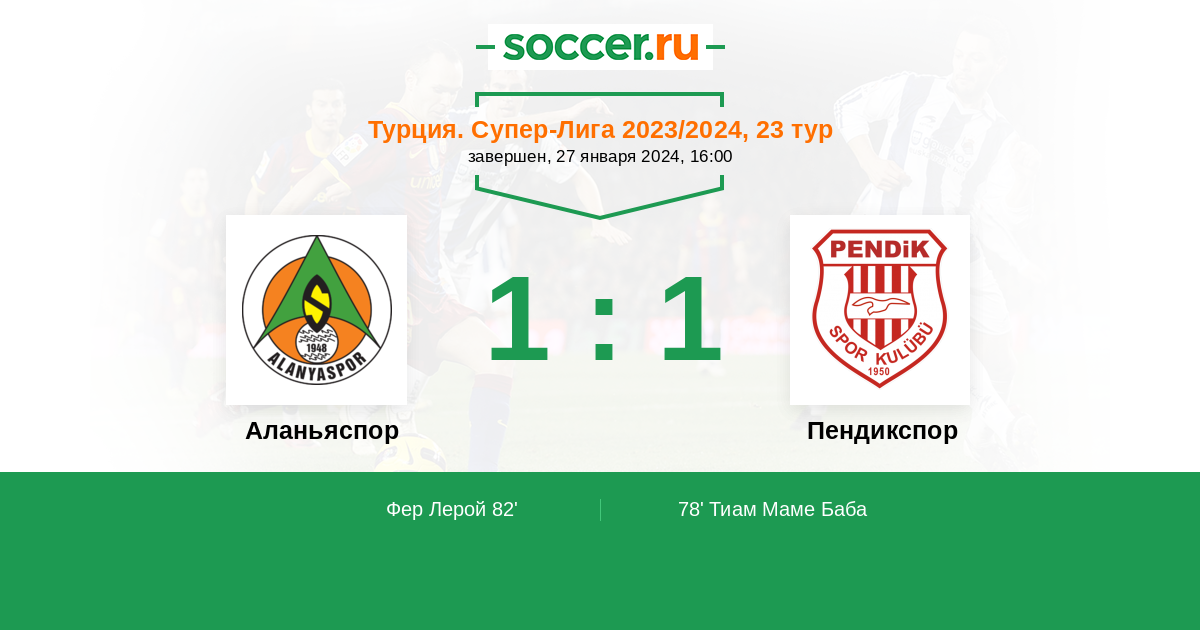 Протокол матча Аланьяспор против Пендикспор
