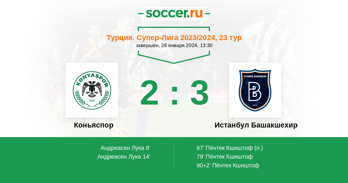 Протокол матча Коньяспор против Истанбул Башакшехир