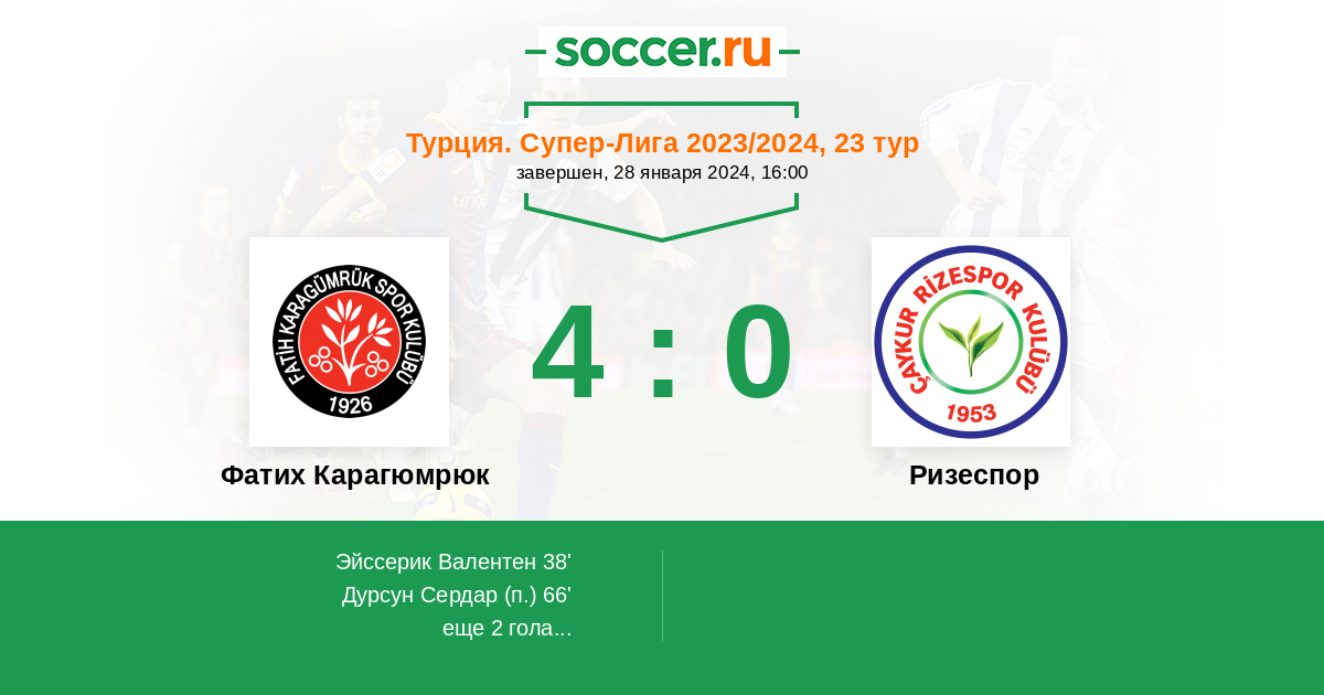 Протокол матча Фатих Карагюмрюк против Ризеспор