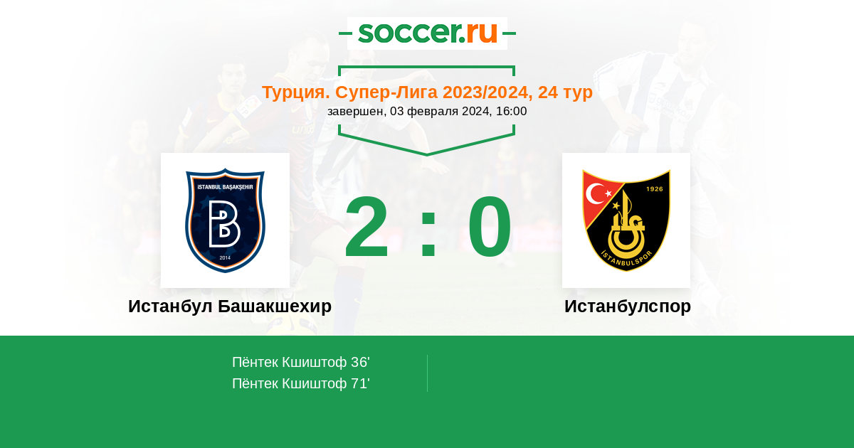 Протокол матча Истанбул Башакшехир против Истанбулспор