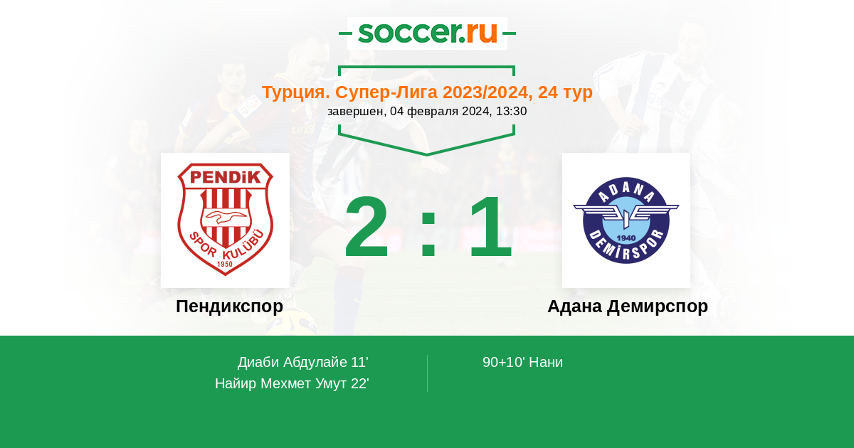22' (2:0) Найир Мехмет Умут (17) (Тиам Маме Баба (27))
