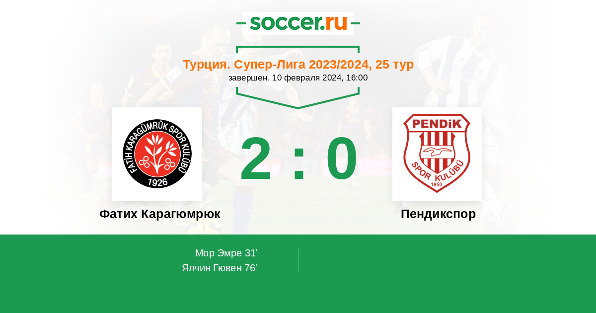 Протокол матча Фатих Карагюмрюк против Пендикспор