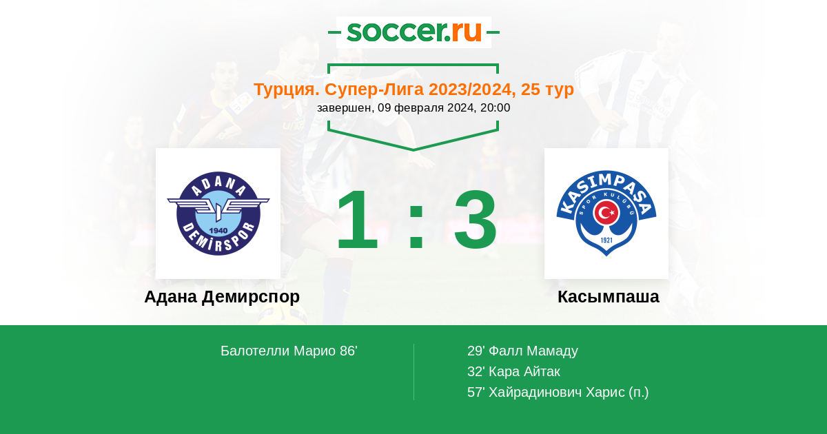 Протокол матча Адана Демирспор против Касымпаша