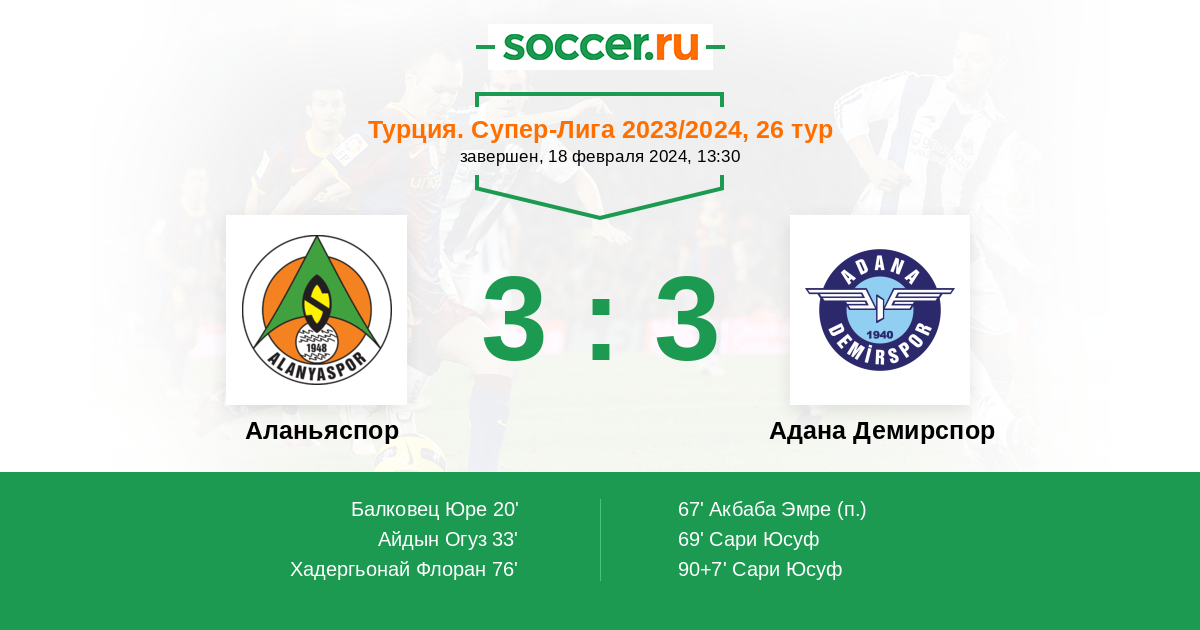 69' (2:2) Сари Юсуф (7) (Бараси Юсуф (56))