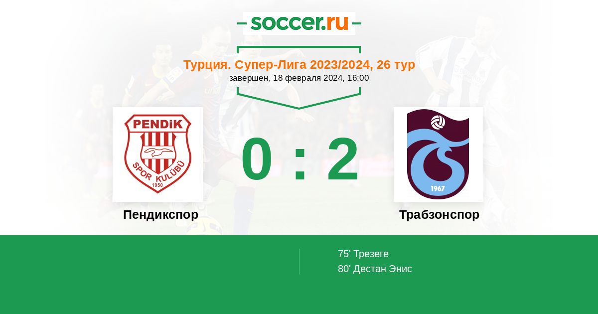 75' (0:1) Трезеге (10) (Оздемир Берат (5))