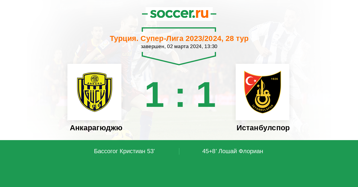 53' (1:1) Бассогог Кристиан (13) (Чигерчи Толга (30))