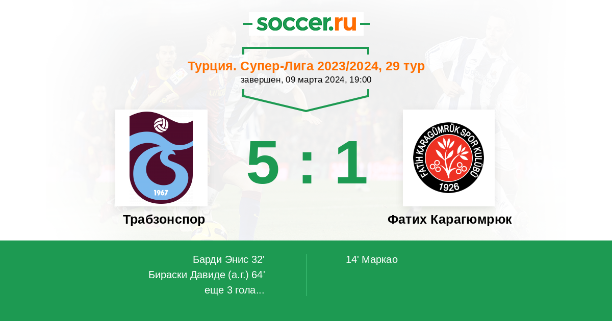 Протокол матча Трабзонспор против Фатих Карагюмрюк