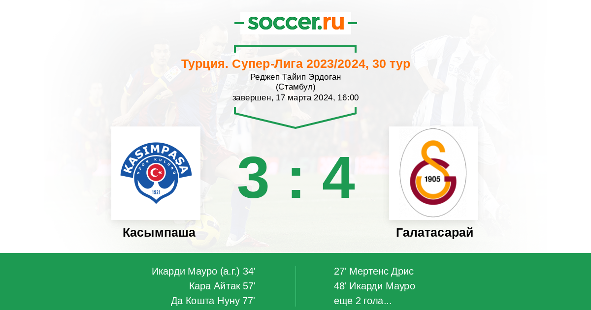 Протокол матча Касымпаша против Галатасарай