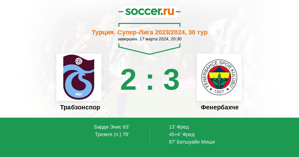 Протокол матча Трабзонспор против Фенербахче