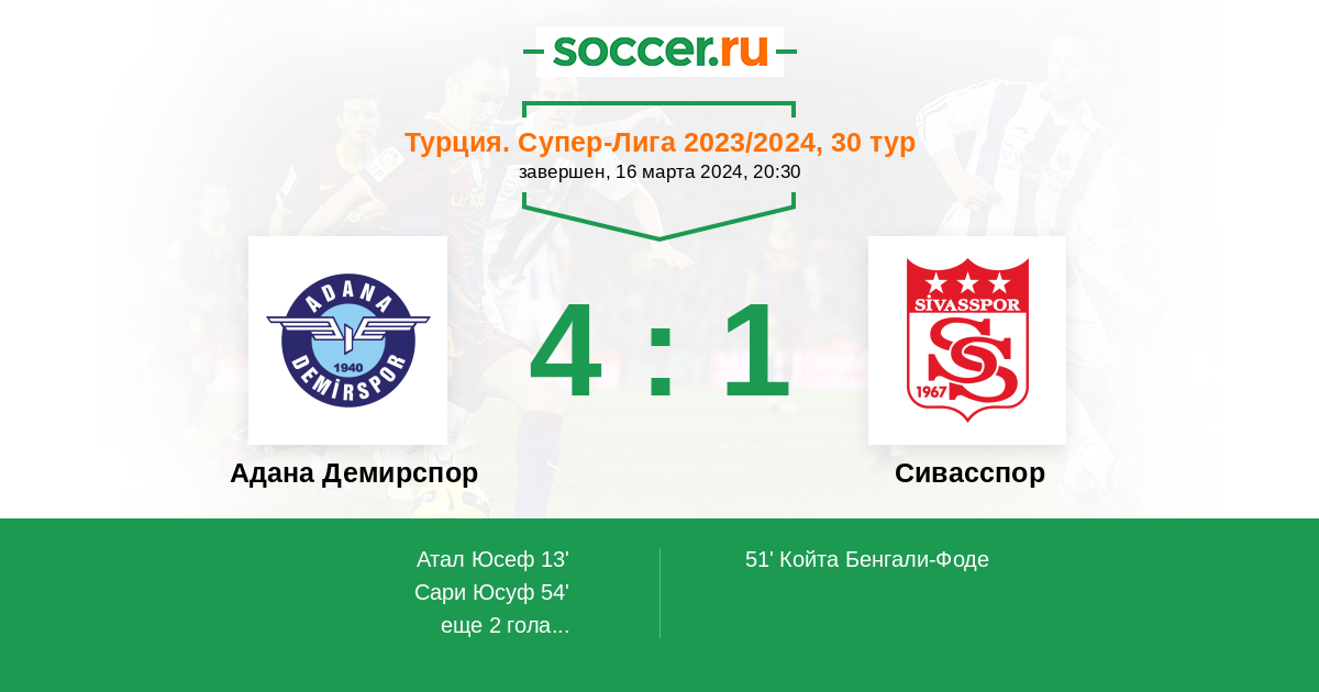 Протокол матча Адана Демирспор против Сивасспор