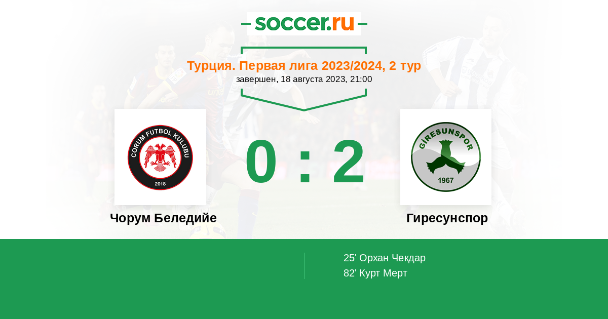 Протокол матча Чорум Беледийе против Гиресунспор