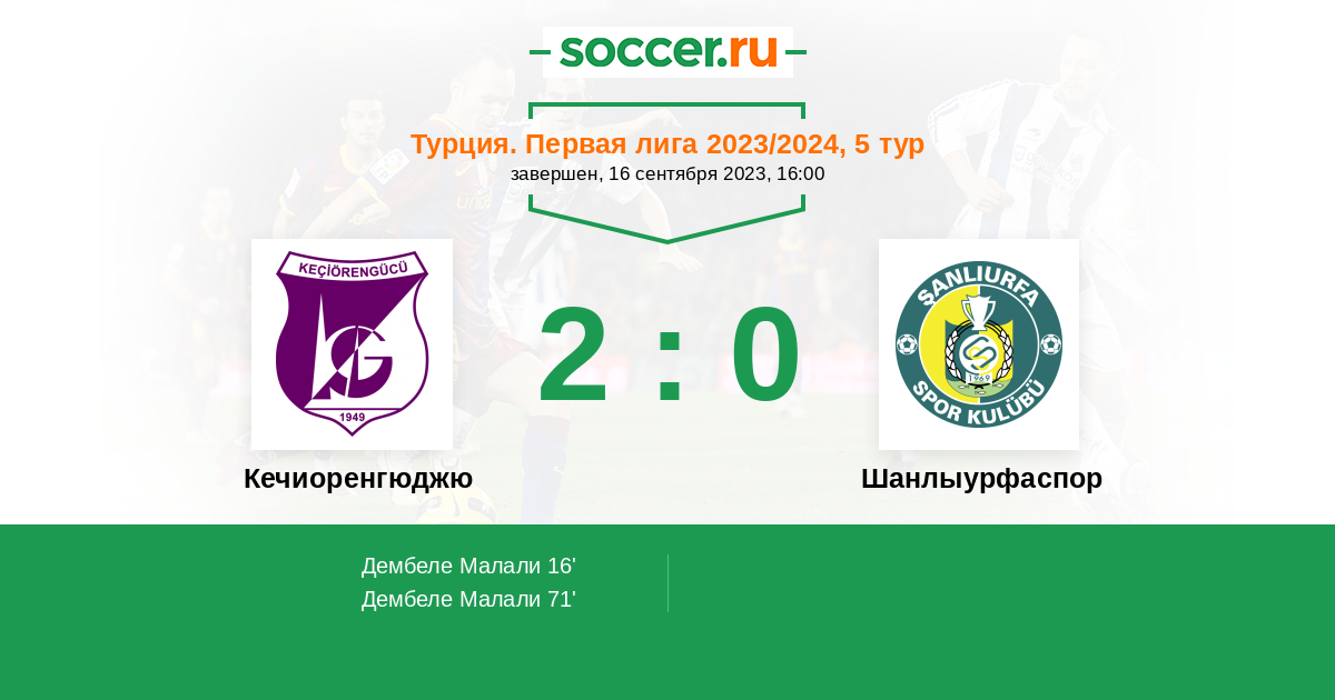 Протокол матча Кечиоренгюджю против Шанлыурфаспор
