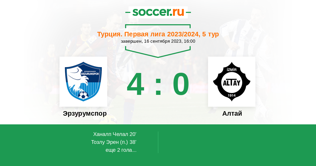 Протокол матча Эрзурумспор против Алтай