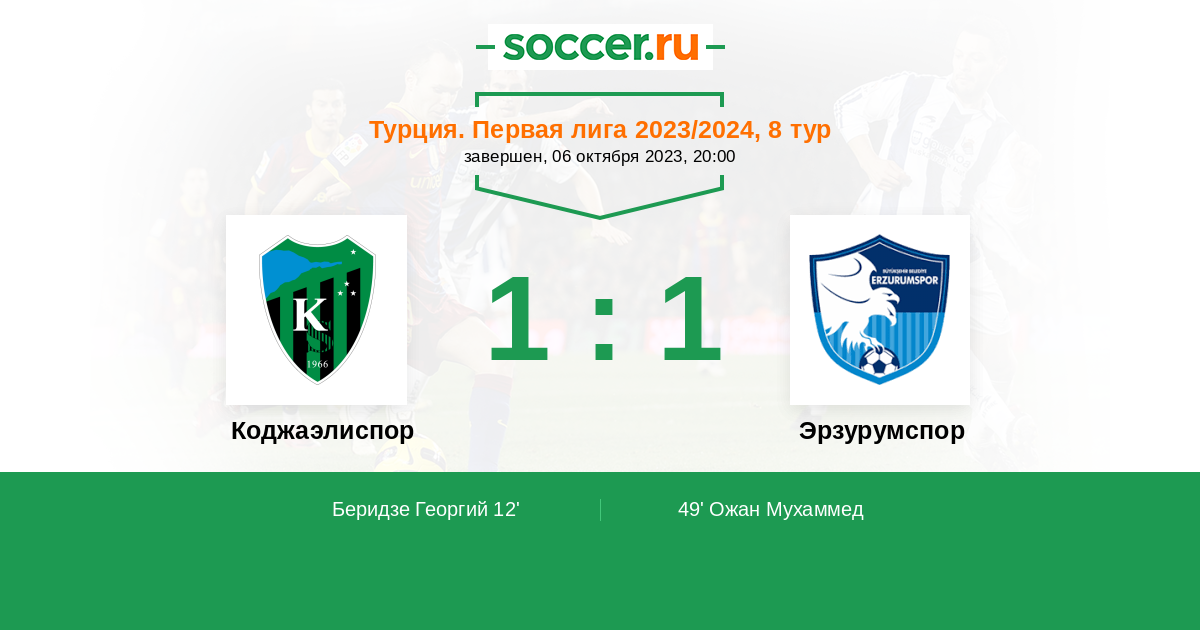 Протокол матча Коджаэлиспор против Эрзурумспор