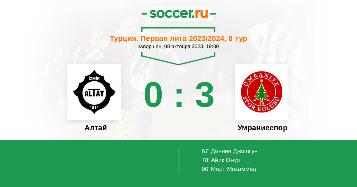 Протокол матча Алтай против Умраниеспор