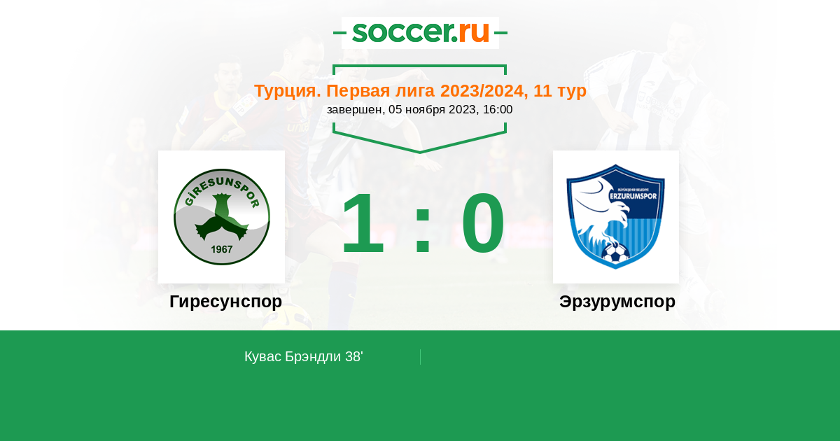 Протокол матча Гиресунспор против Эрзурумспор