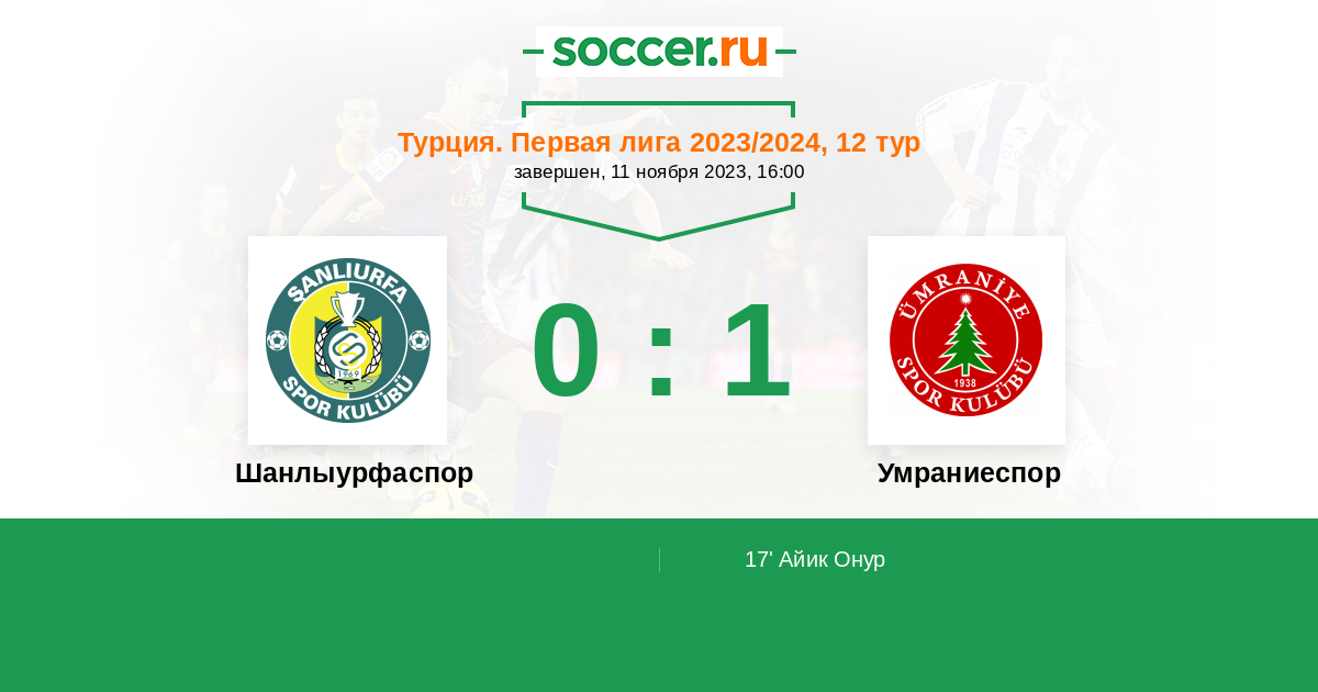 Протокол матча Шанлыурфаспор против Умраниеспор