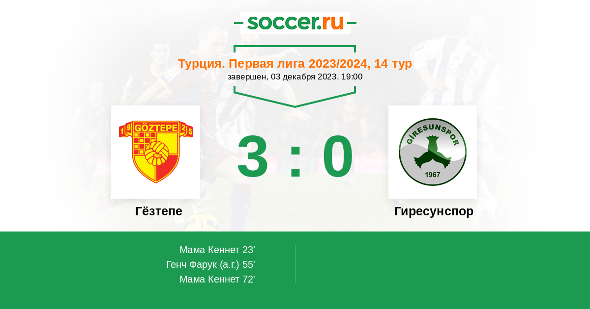Протокол матча Гёзтепе против Гиресунспор