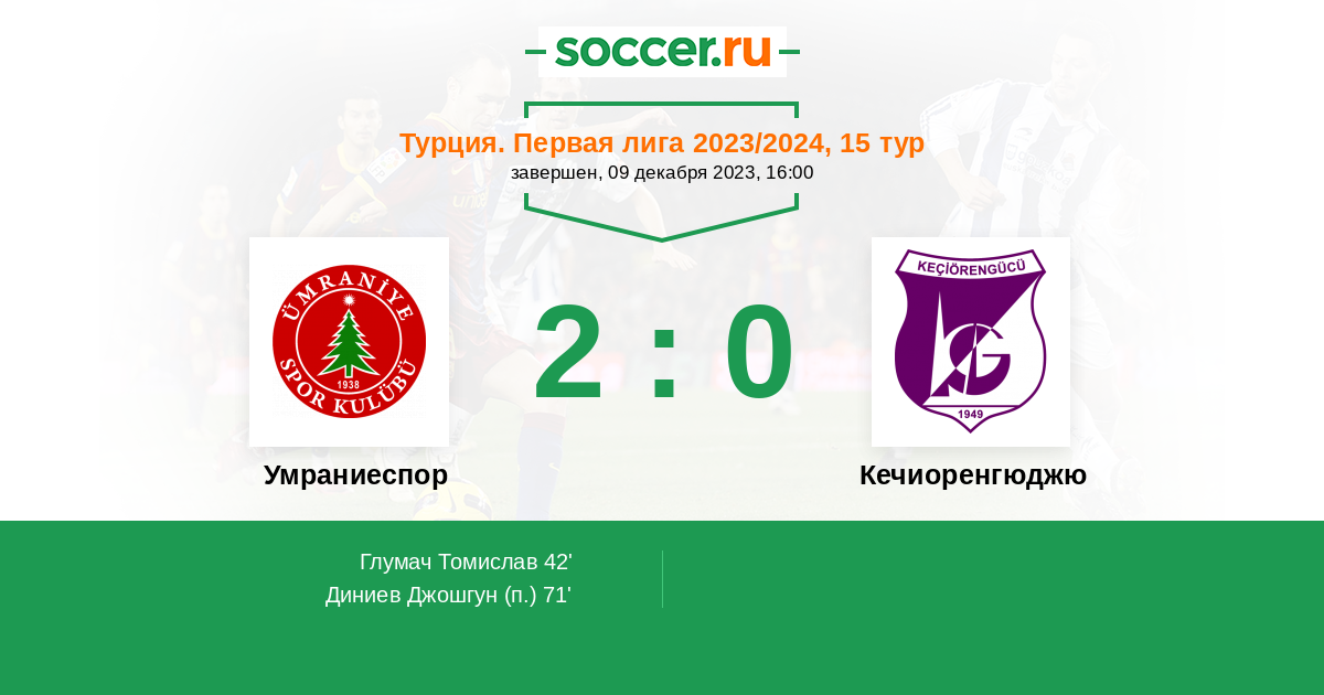 Протокол матча Умраниеспор против Кечиоренгюджю