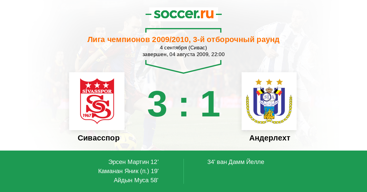 Протокол матча Сивасспор против Андерлехт