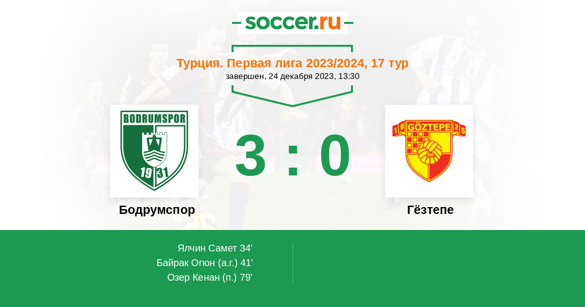 34' (1:0) Ялчин Самет (8) (Эргюн Юзеир (23))