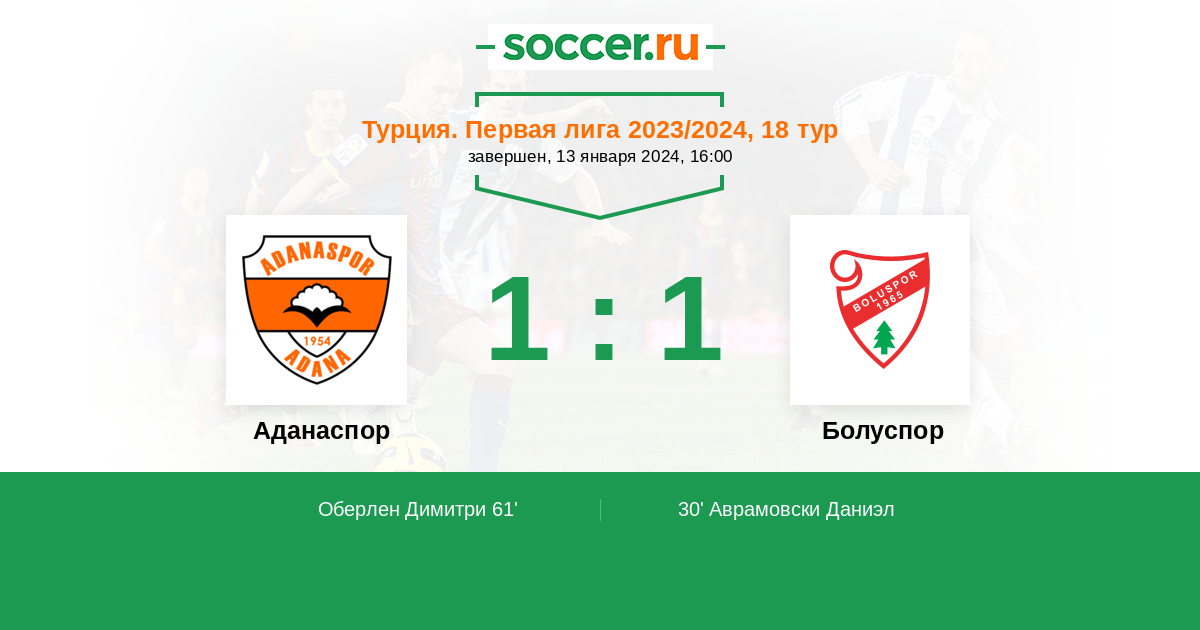 Протокол матча Аданаспор против Болуспор