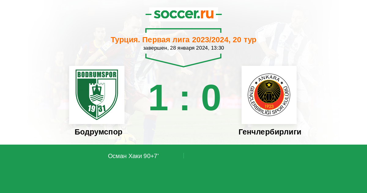 90+7' (1:0) Осман Хаки (19) (Озер Кенан (10))