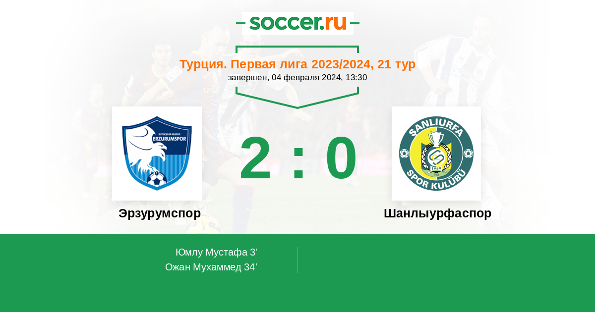 Протокол матча Эрзурумспор против Шанлыурфаспор