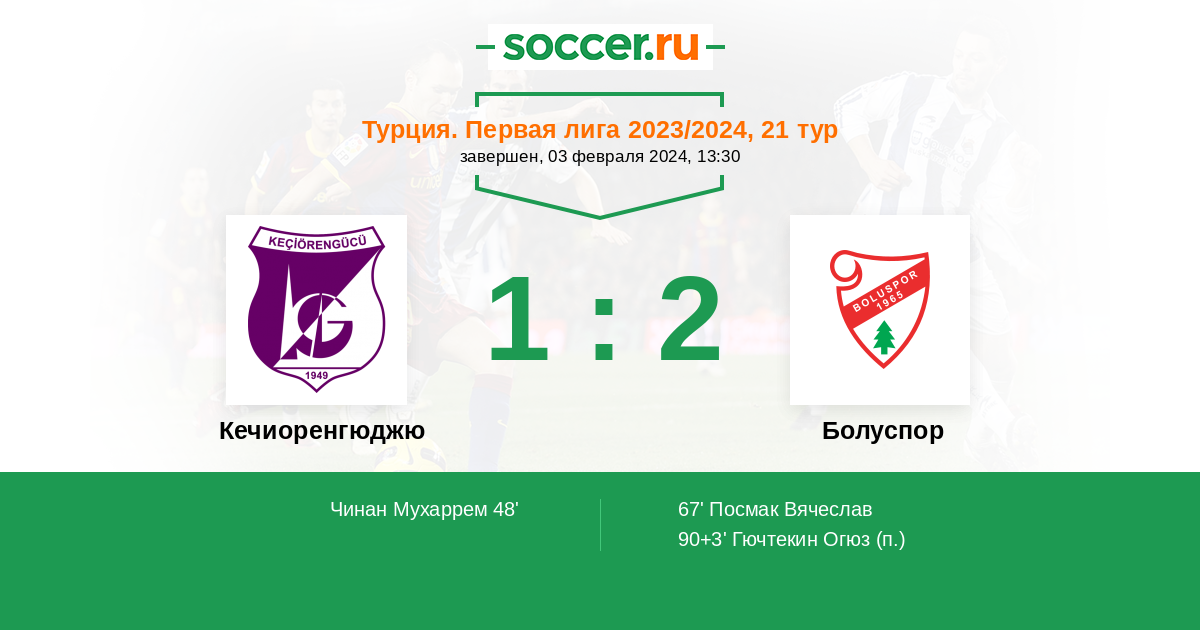 Протокол матча Кечиоренгюджю против Болуспор