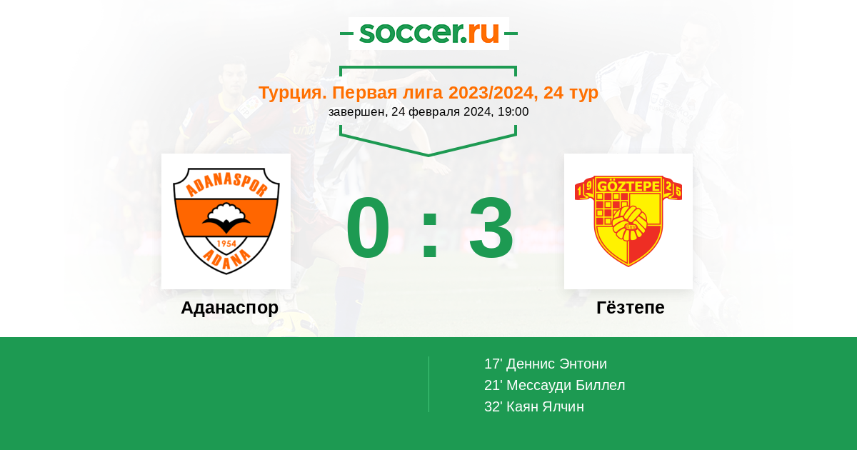 Протокол матча Аданаспор против Гёзтепе