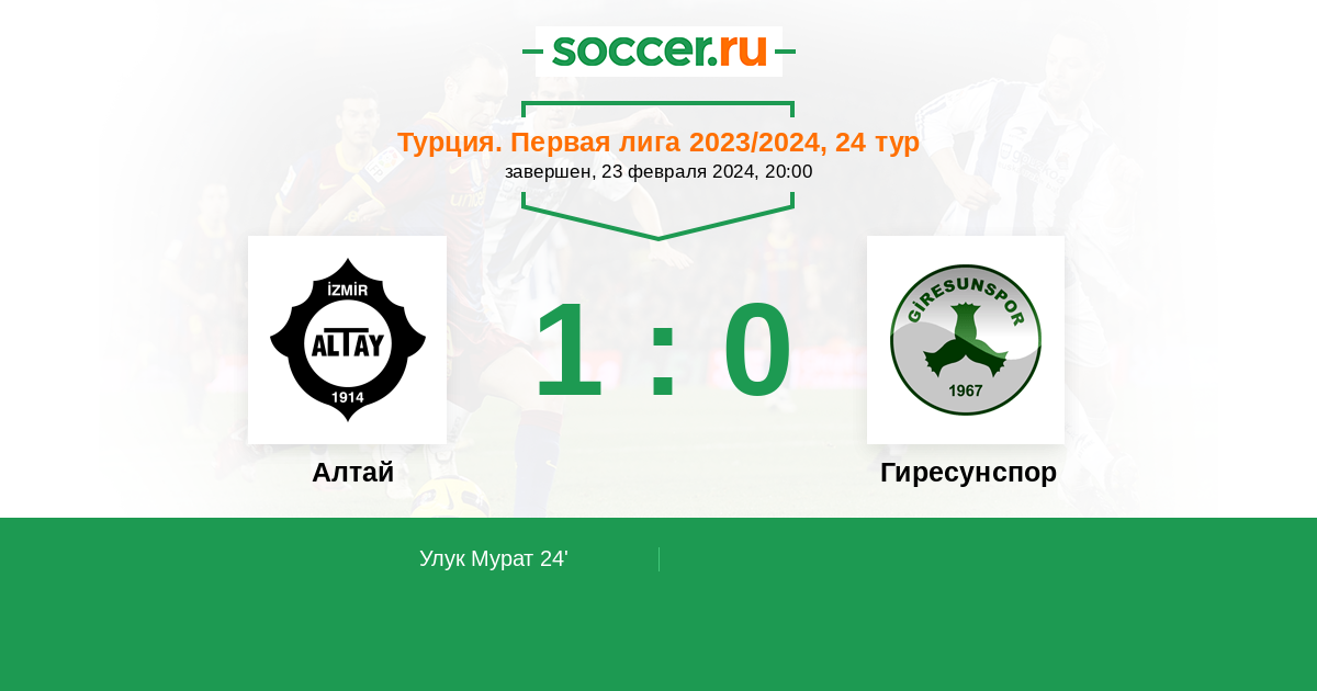 24' (1:0) Улук Мурат (11) (Сарикая Салих (17))