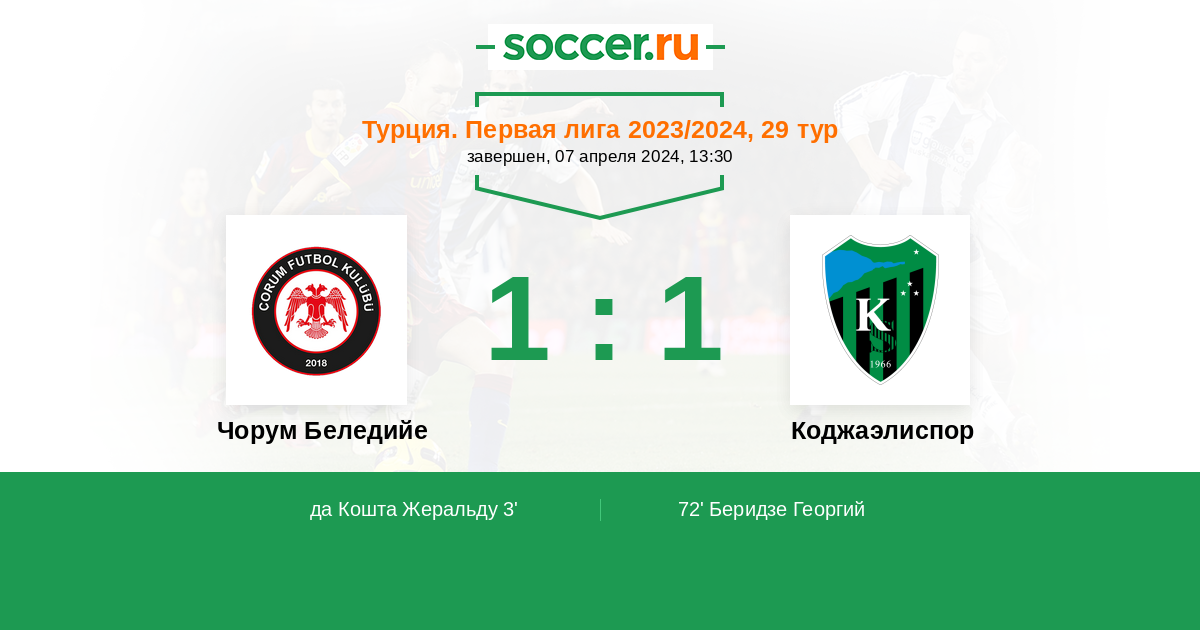 Протокол матча Чорум Беледийе против Коджаэлиспор